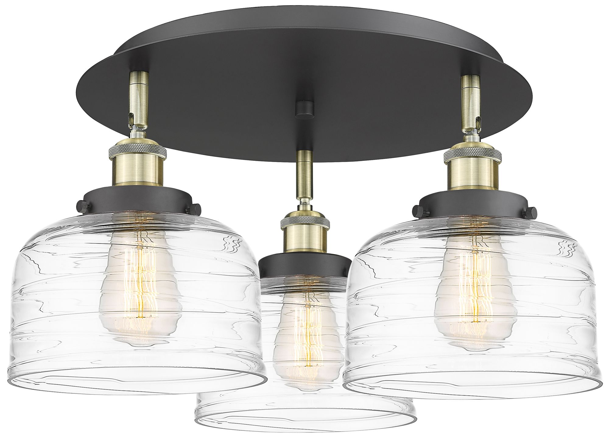 Bell 19.75"W 3 Light Black Antique Brass Flush Mount w/ Deco Swirl Sha
