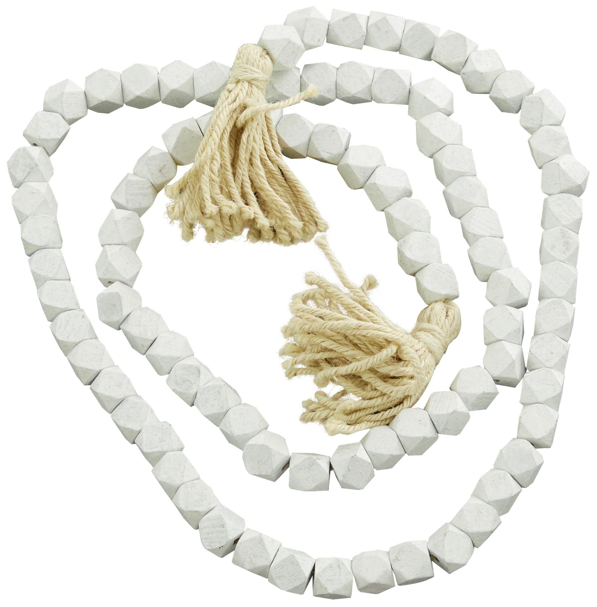 White Mango Wood Bohemian Garland with Tassel, 80" x 1" x 1"
