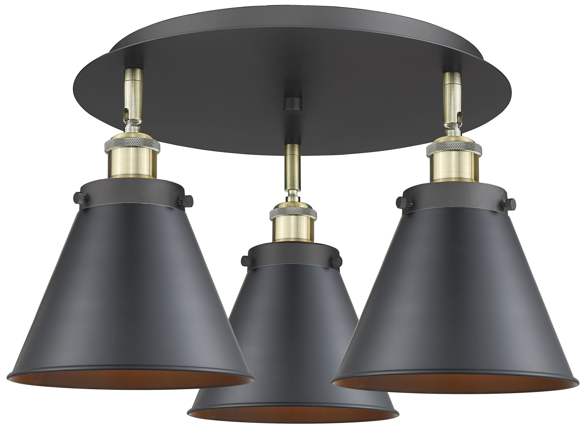 Ballston Urban 19.75"W 3 Light Black Brass Flush Mount w/ Tall Black S