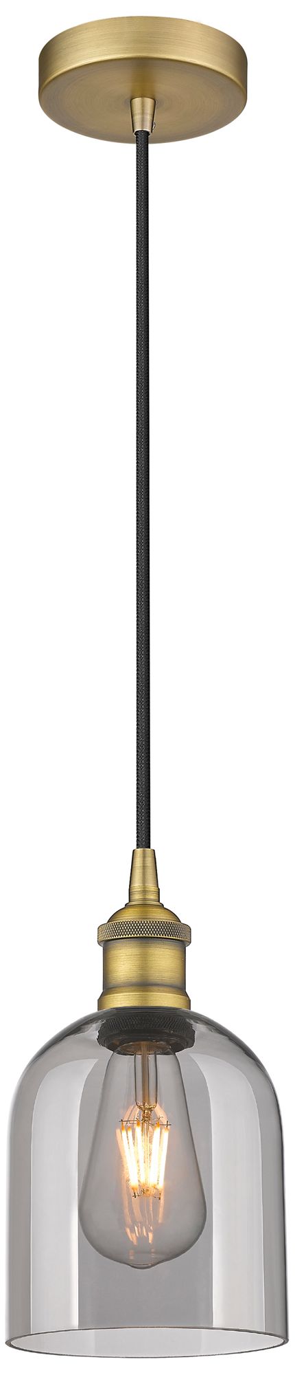 Edison Bella 5.5"W Brushed Brass Corded Mini Pendant w/ Light Smoke Sh