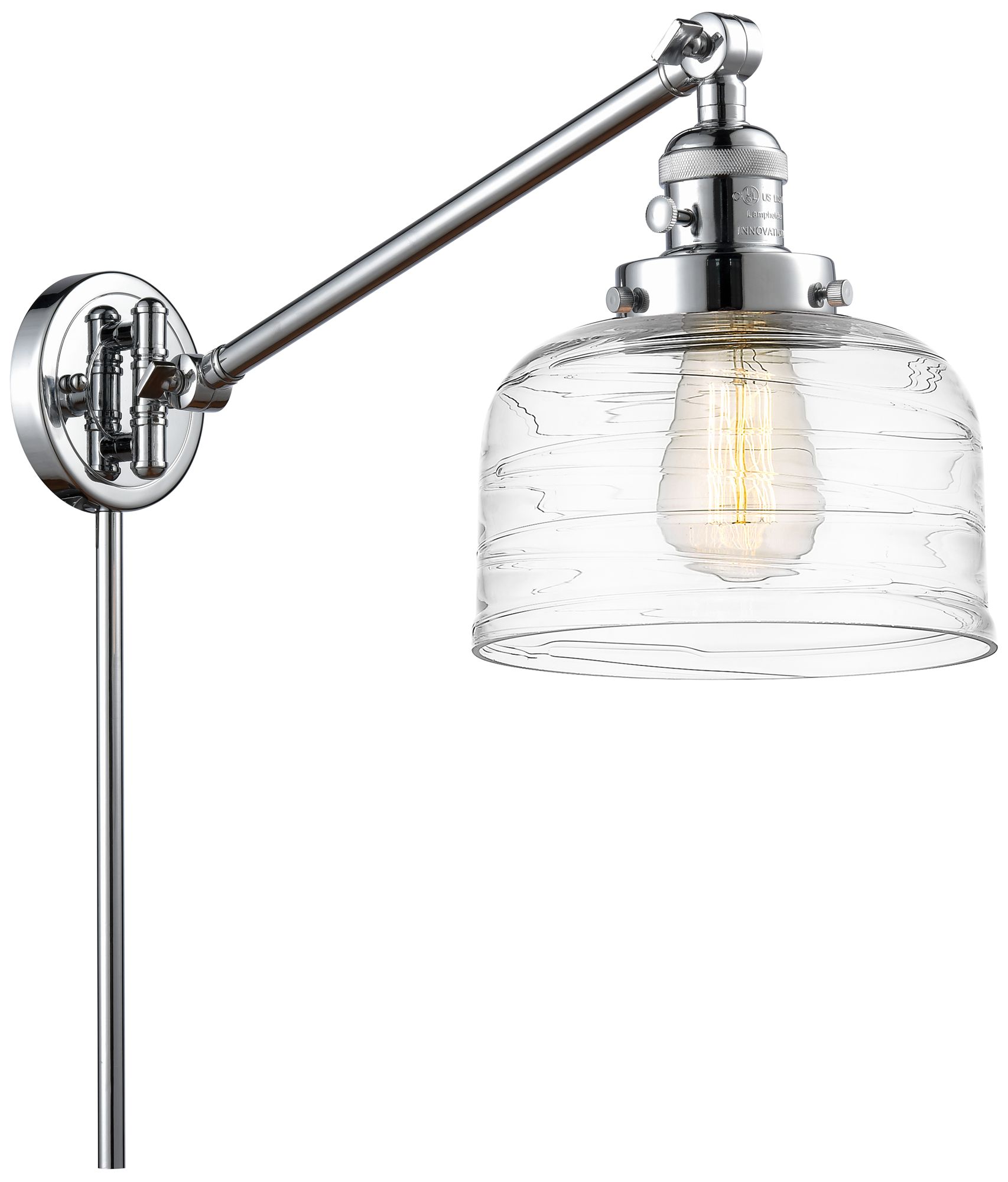 Bell 8" Polished Chrome LED Swing Arm With Clear Deco Swirl Shade