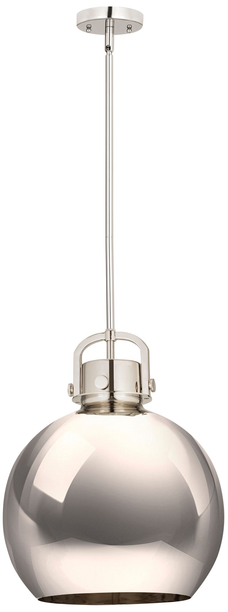 Newton Metal Sphere 14"W Polished Nickel Stemmed Pendant w/ Nickel Sha