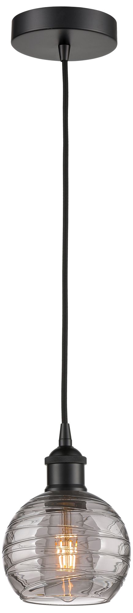 Edison Athens 5.88"W Matte Black Corded Mini Pendant w/ Smoke Swirl Sh