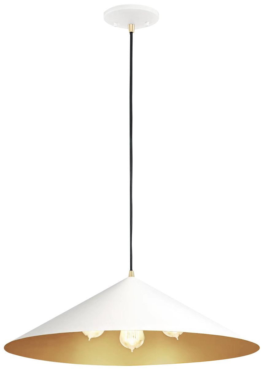 Justice Design Conos 24" Matte White And Gold 3-Light Cone Pendant
