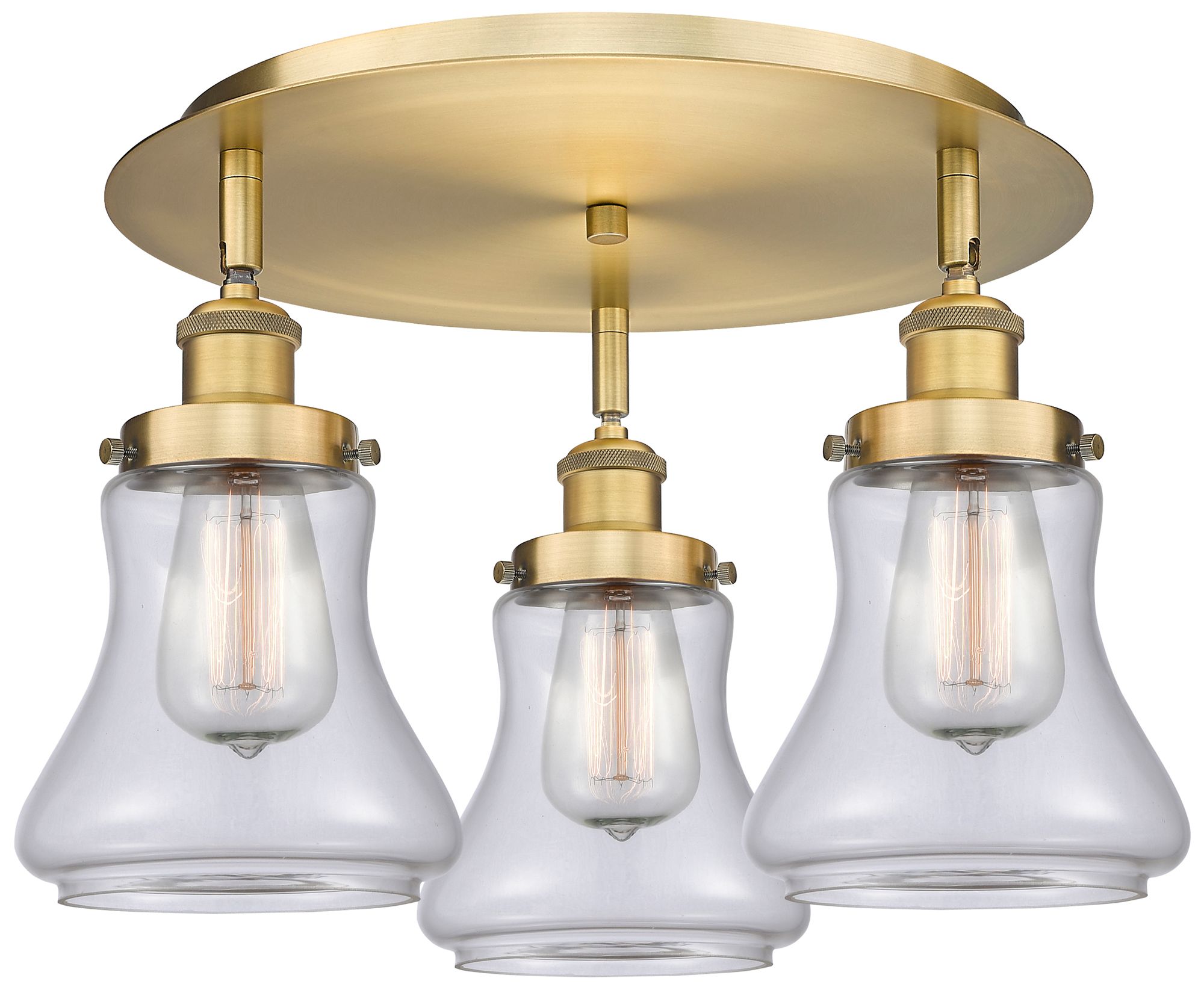 Bellmont 17.75"W 3 Light Brushed Brass Flush Mount With Clear Glass Sh
