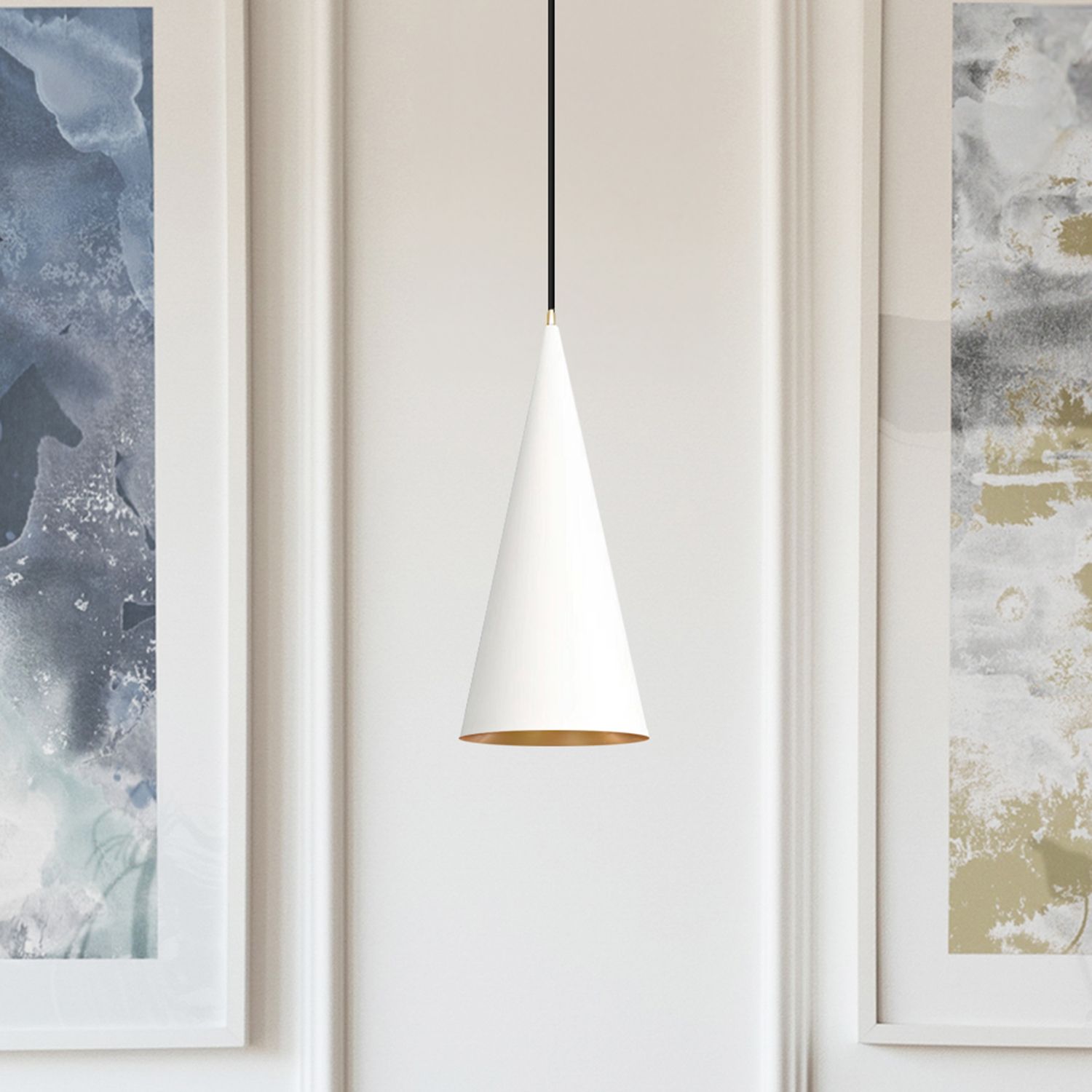 Conos 7"W Matte White and Champagne Gold Cone Mini Pendant