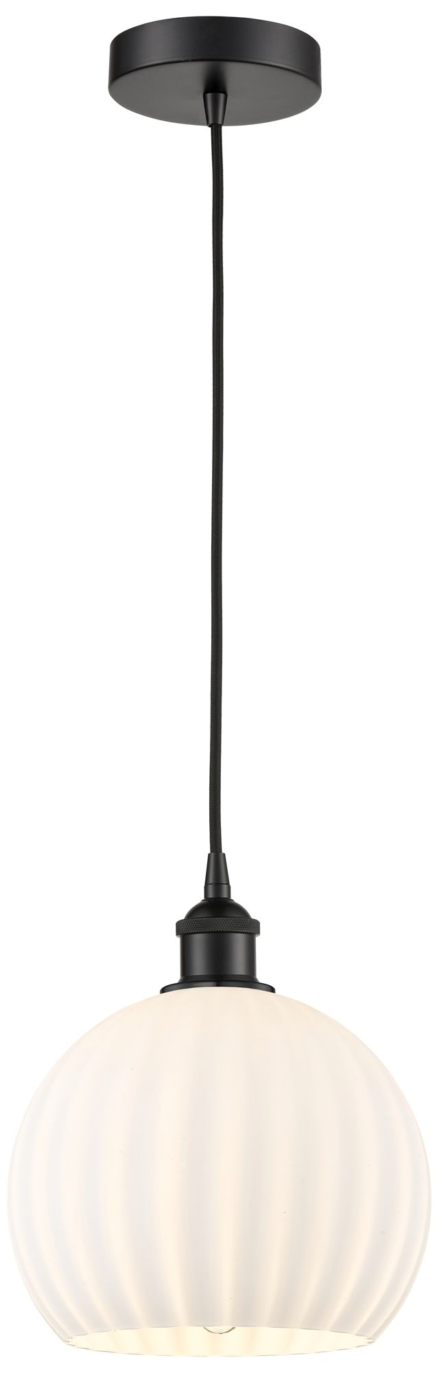 Edison 10" Wide Matte Black Cord Hung Mini Pendant w/ White Venetian S