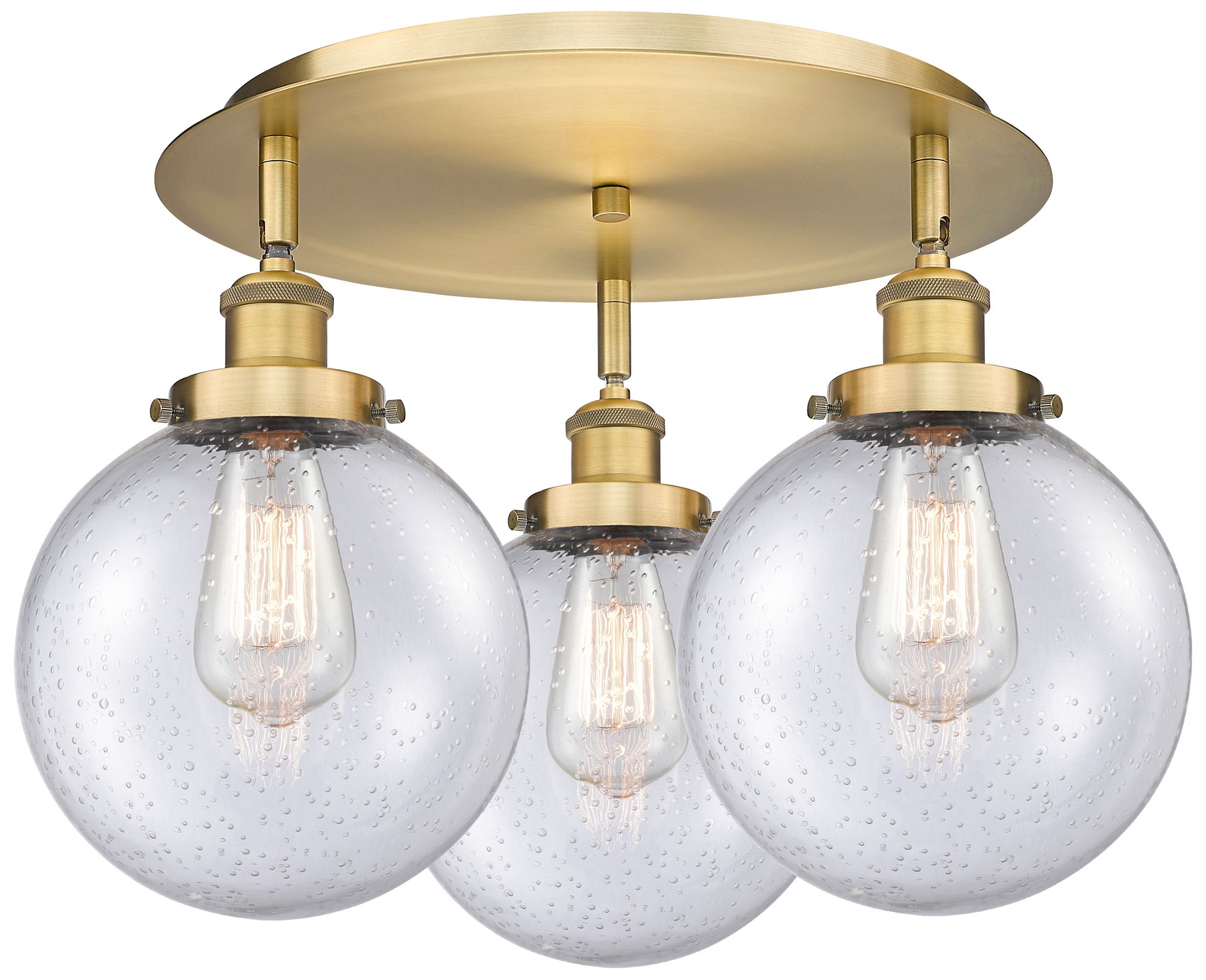 Canton 19.75" Wide 3 Light Brushed Brass Flush Mount With Seedy Glass