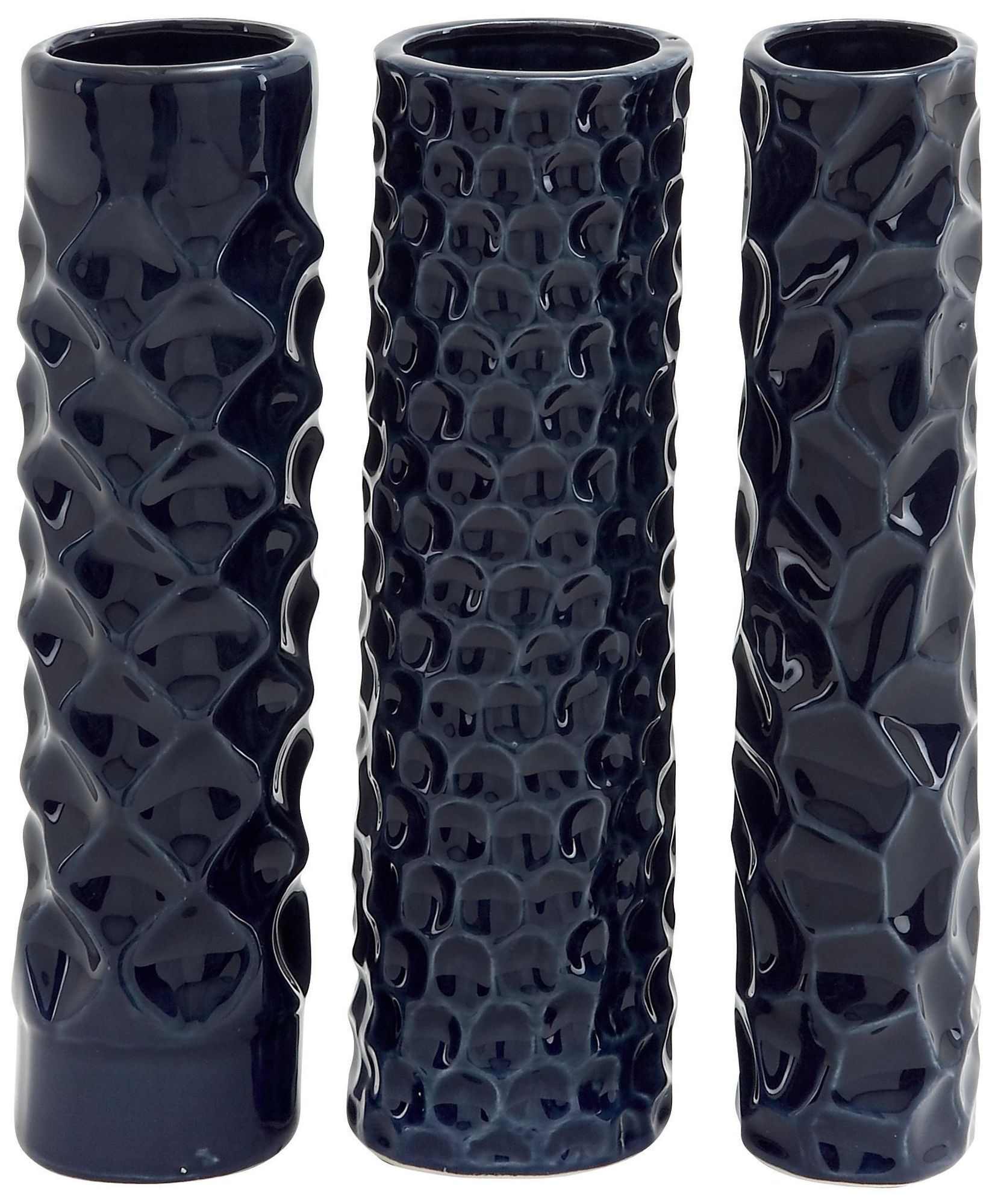Dark Blue Ceramic Contemporary Vase, S/3 3"W, 12"H