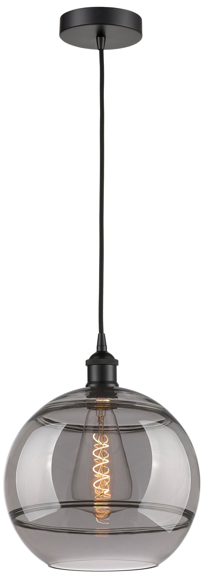 Edison Rochester 12"W Matte Black Corded Mini Pendant w/ Light Smoke S