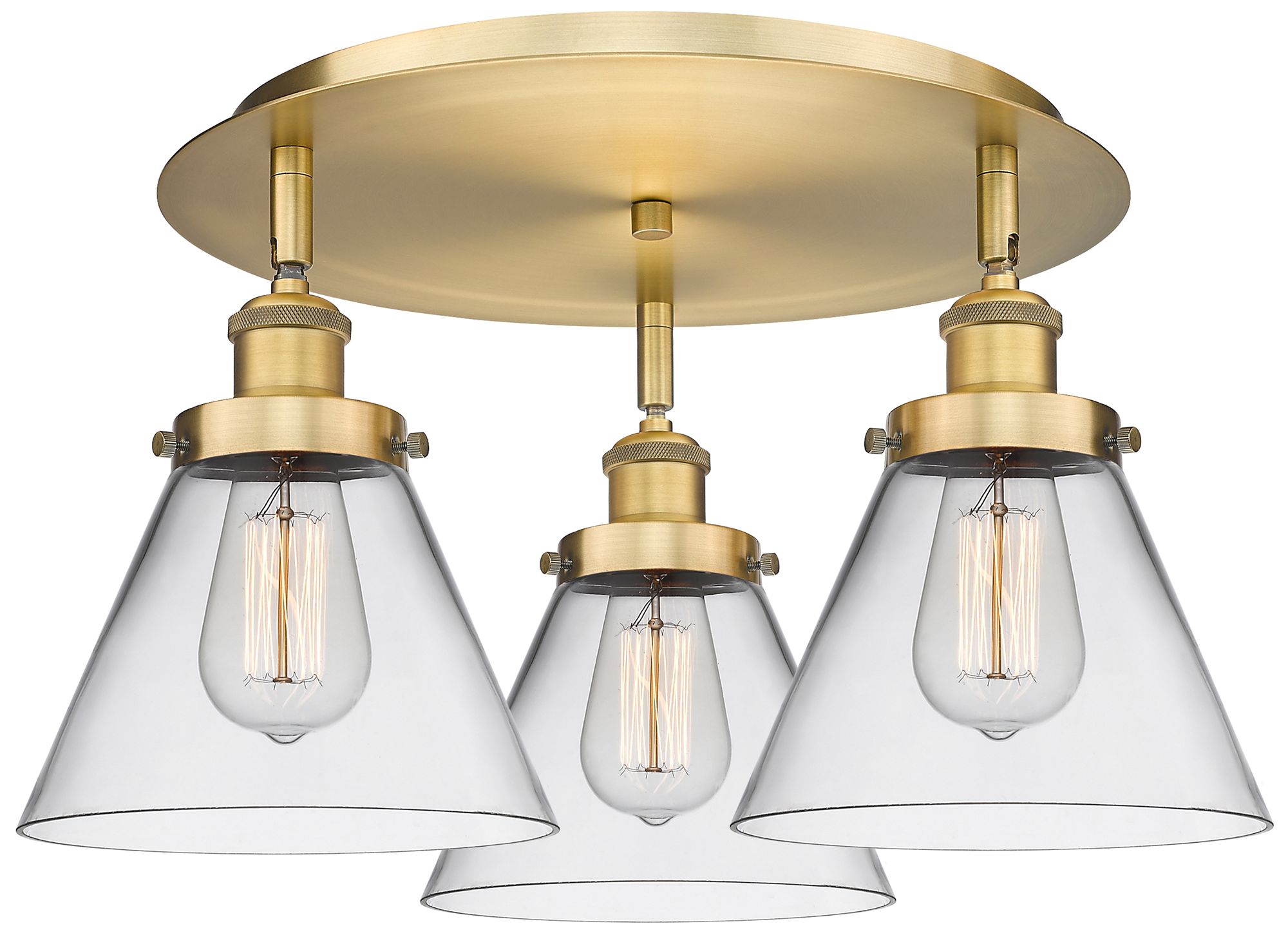 Cone 19.5" Wide 3 Light Brushed Brass Flush Mount With Clear Glass Sha