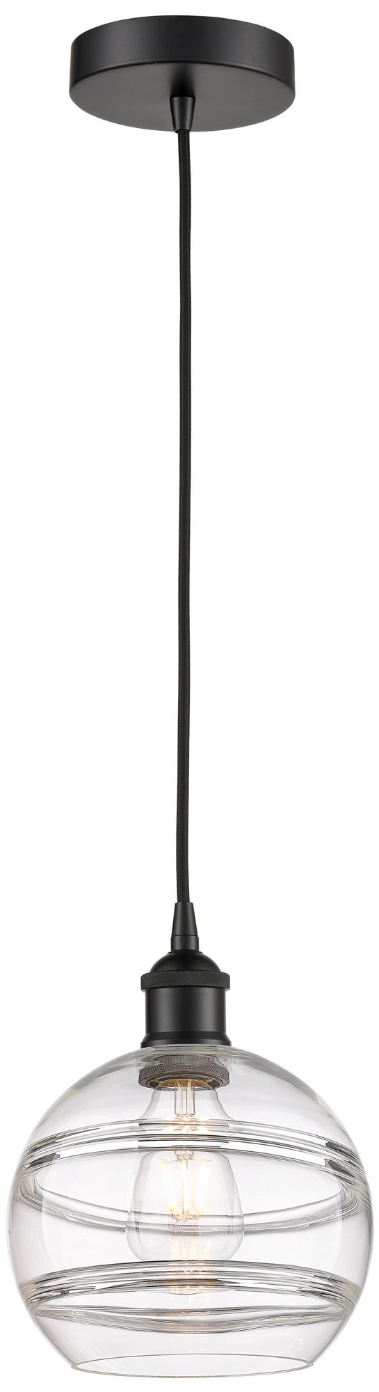 Edison Rochester 8" Wide Matte Black Cord Hung Mini Pendant w/ Clear S