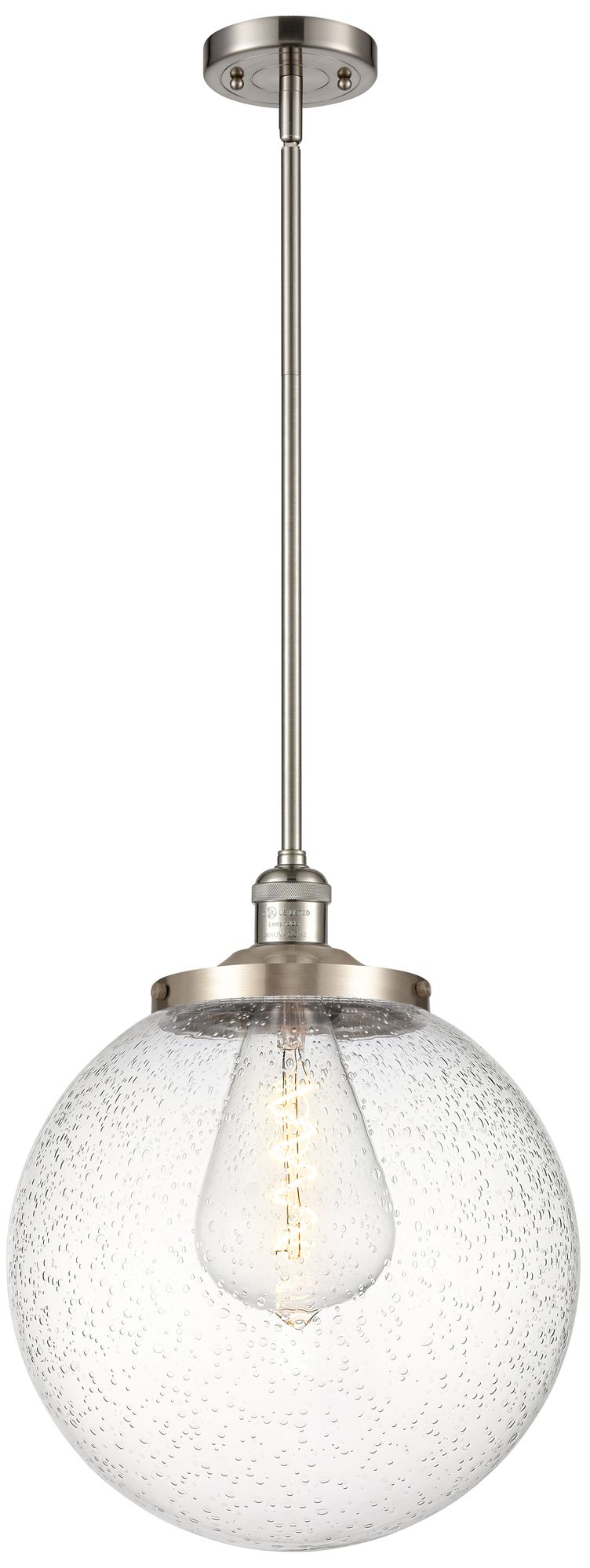 Beacon 14" Wide Brushed Satin Nickel Pendant With Seedy Shade