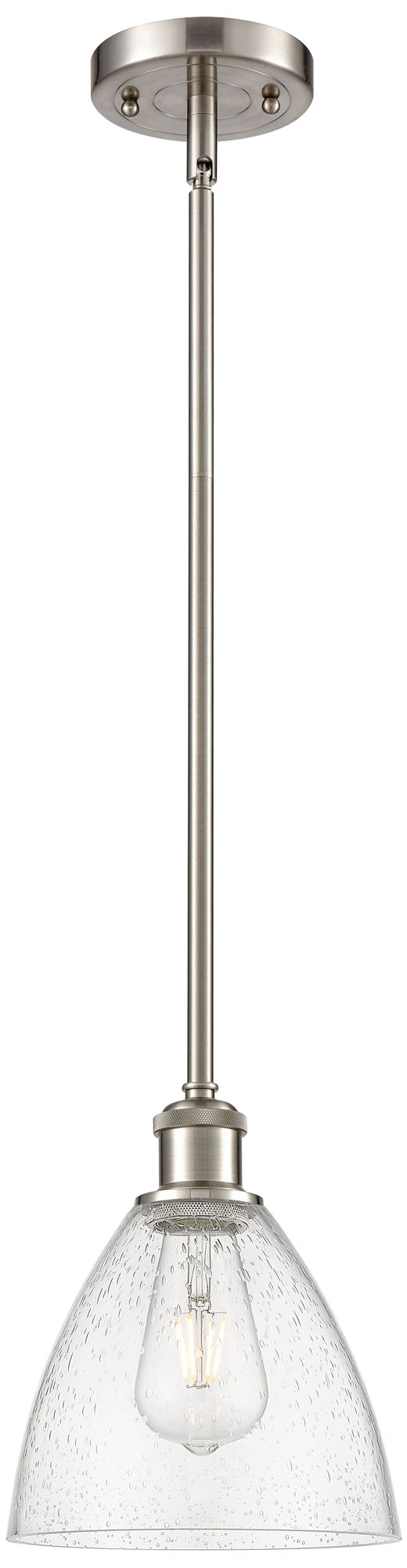 Bristol Glass 7.5"W Brushed Nickel Stem Hung Mini Pendant w/ Seedy Sha