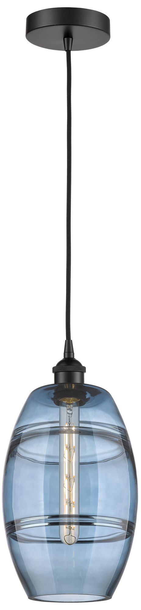 Edison Vaz 8" Wide Matte Black Corded Mini Pendant w/ Princess Blue Sh