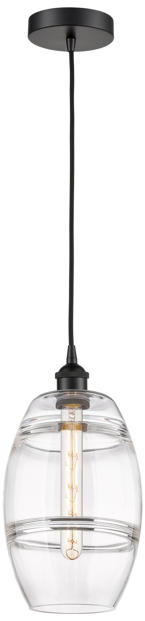 Edison Vaz 8" Wide Matte Black Cord Hung Mini Pendant With Clear Shade