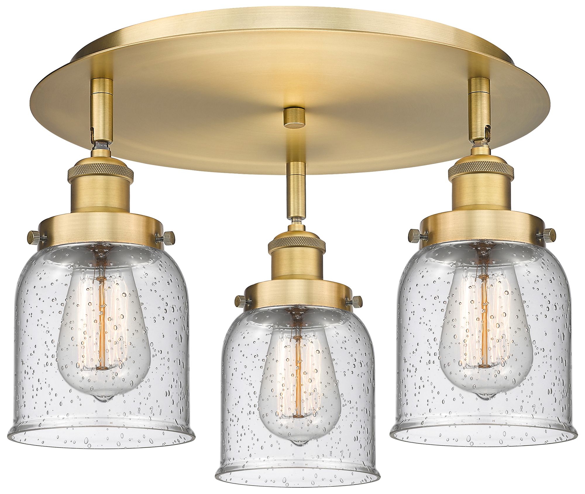 Bell 16.75" Wide 3 Light Brushed Brass Flush Mount With Seedy Glass Sh