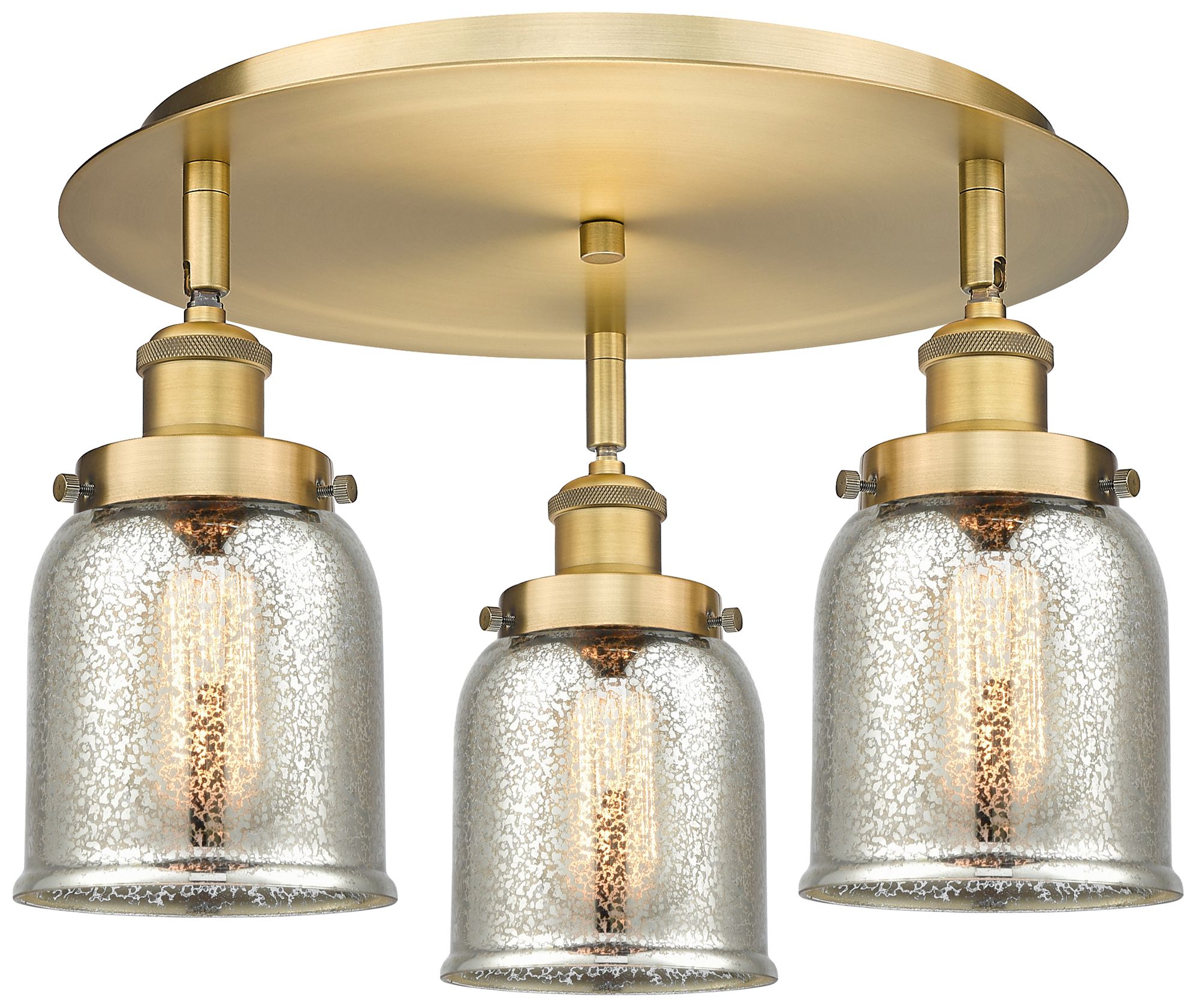 Bell 16.75"W 3 Light Brushed Brass Flush Mount w/ Mercury Glass Shade