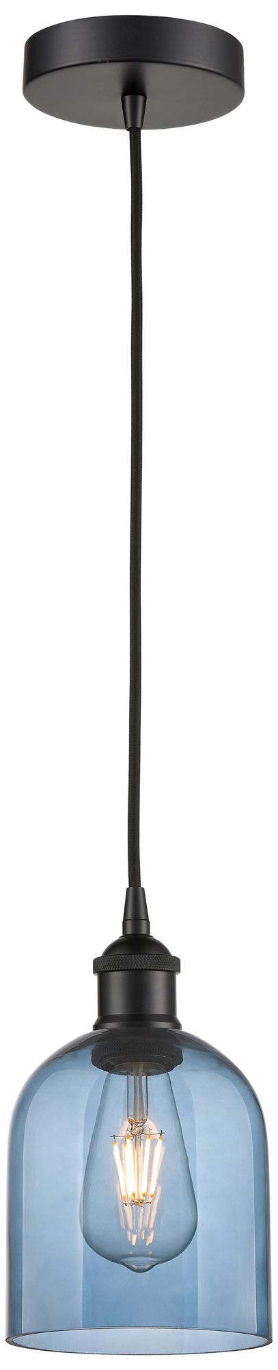 Edison Bella 5.5"W Matte Black Corded Mini Pendant w/ Princess Blue Sh