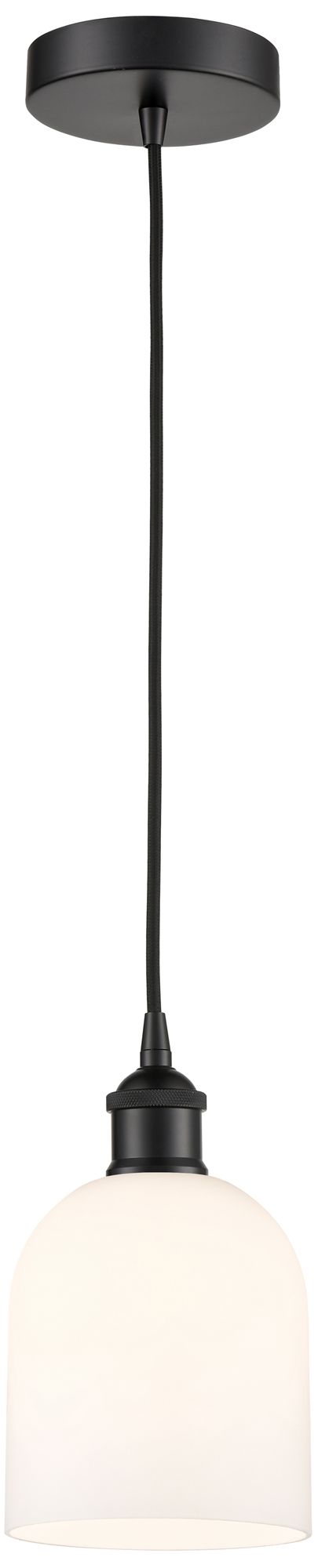 Edison Bella 5.5"W Matte Black Corded Mini Pendant w/ Glossy White Sha