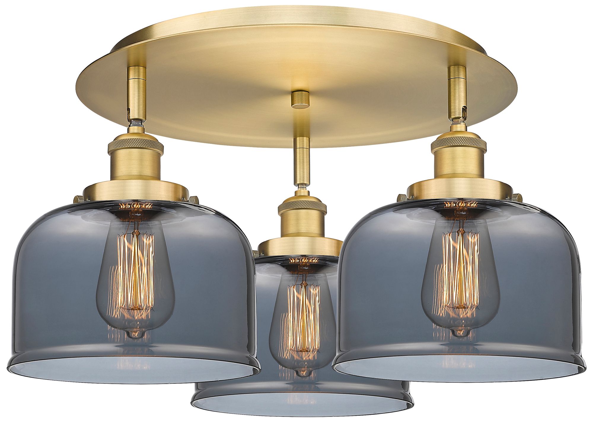Bell 19.75"W 3 Light Brushed Brass Flush Mount w/ Plated Smoke Glass S