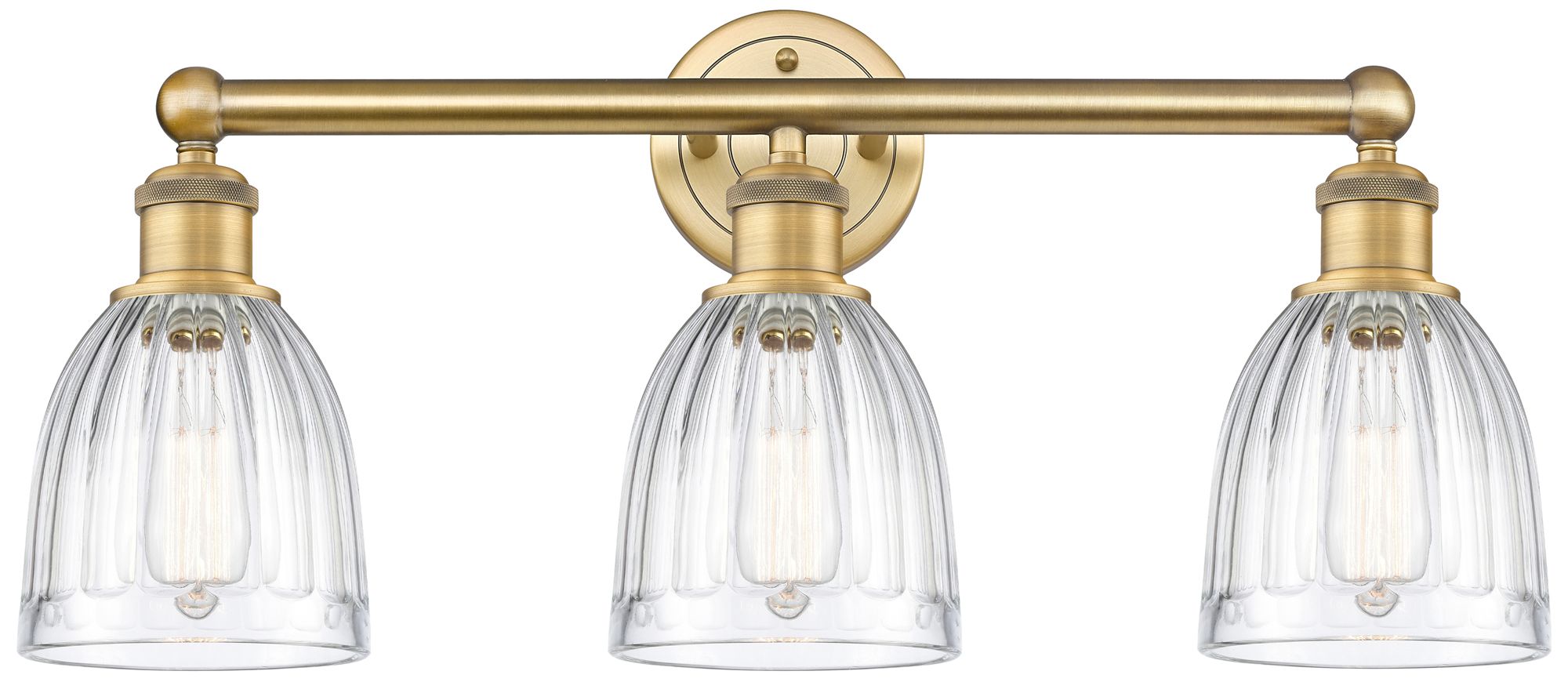 Brookfield 23.75"W 3 Light Brushed Brass Bath Vanity Light With Clear