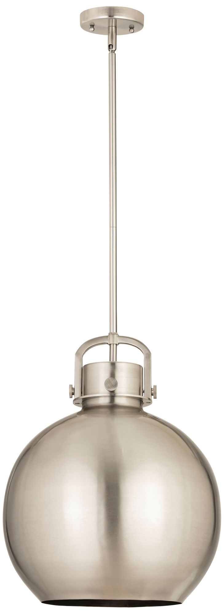 Newton Metal Sphere 14"W Satin Nickel Stemmed Pendant w/ Satin Nickel