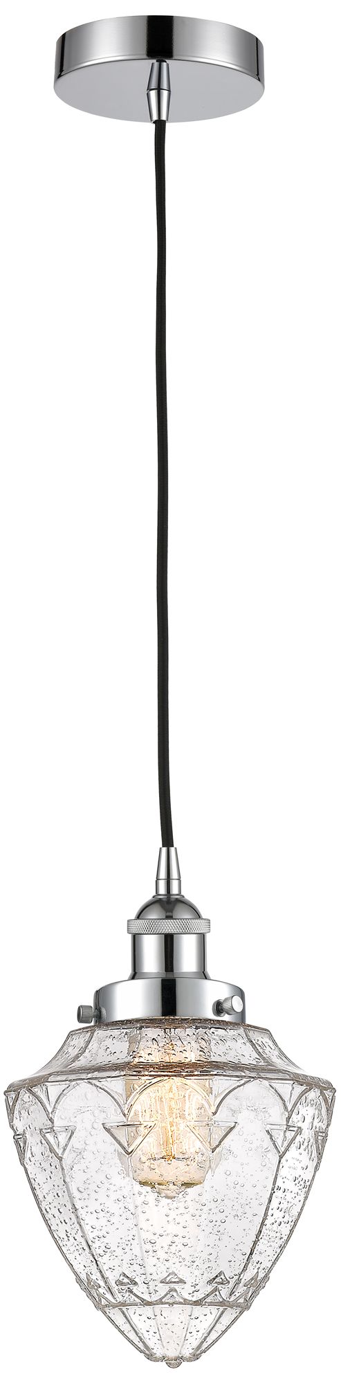 Bullet 7" Polished Chrome Cord Hung Mini Pendant w/ Seedy Shade