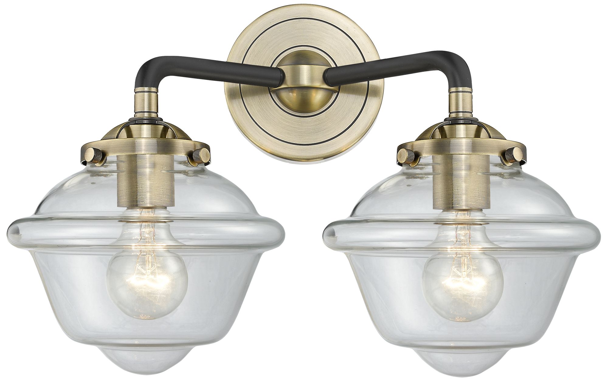 Nouveau Oxford 15.5"W 2 Light Black Brass Bath Vanity Light w/ Clear S