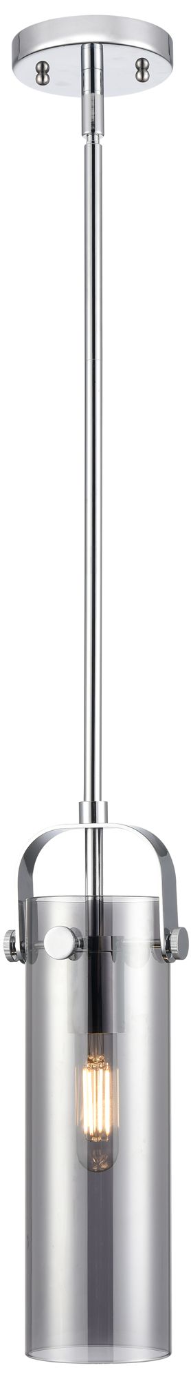 Pilaster II Cylinder 5"W Stem Hung Polished Chrome Pendant w/ Smoke Sh