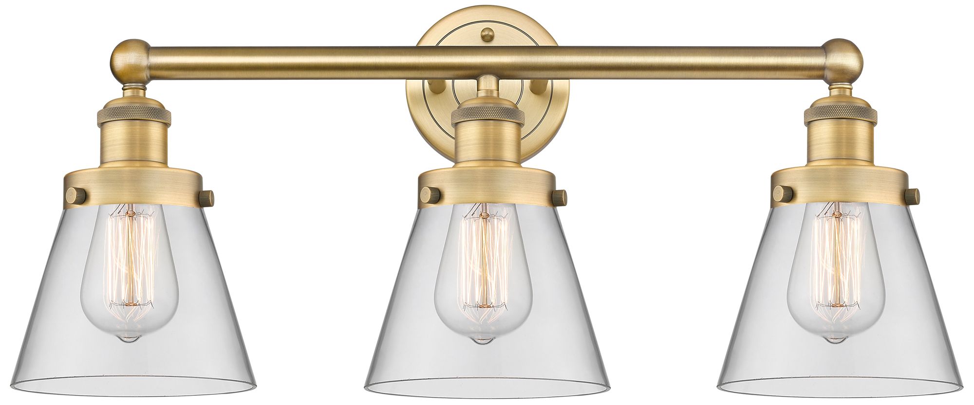 Edison Small Cone 24.5"W 3 Light Brushed Brass Bath Light With Clear S