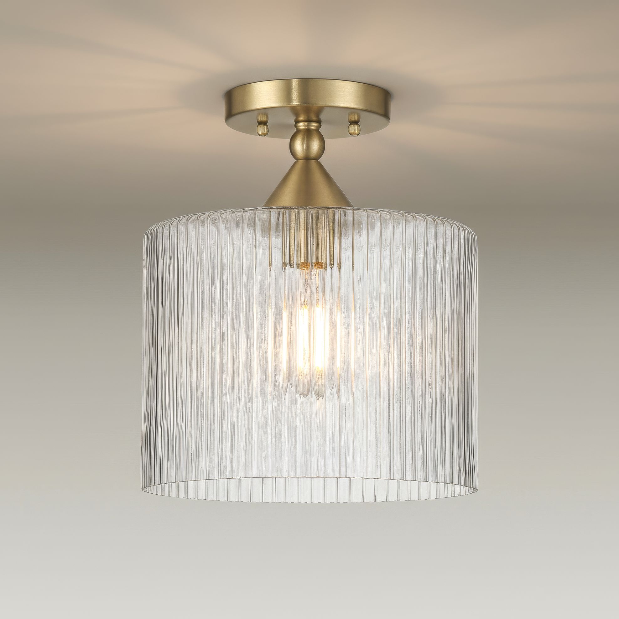 Possini Euro Krakow 10" Wide Satin Brass Fluted Glass Ceiling Light