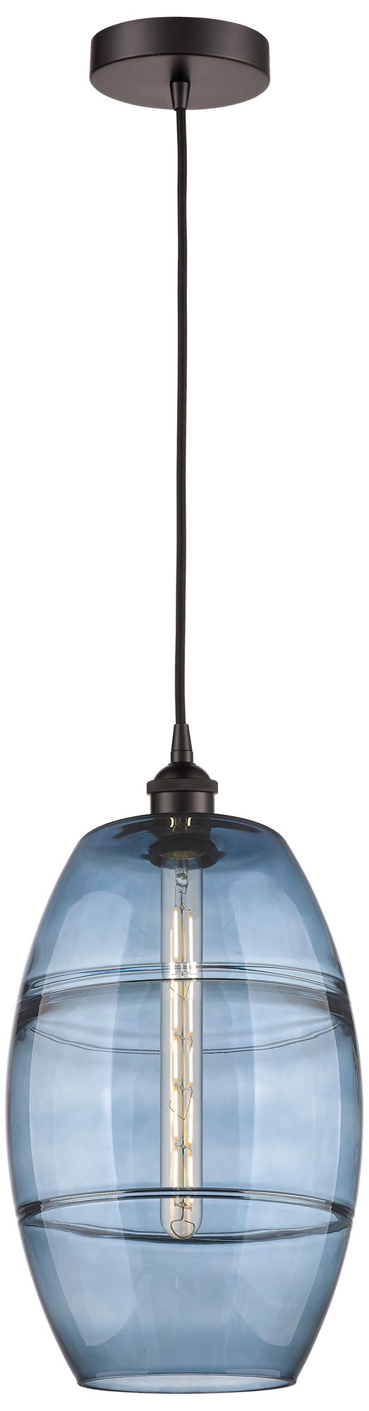 Edison Vaz 10"W Oiled Bronze Corded Mini Pendant w/ Princess Blue Shad