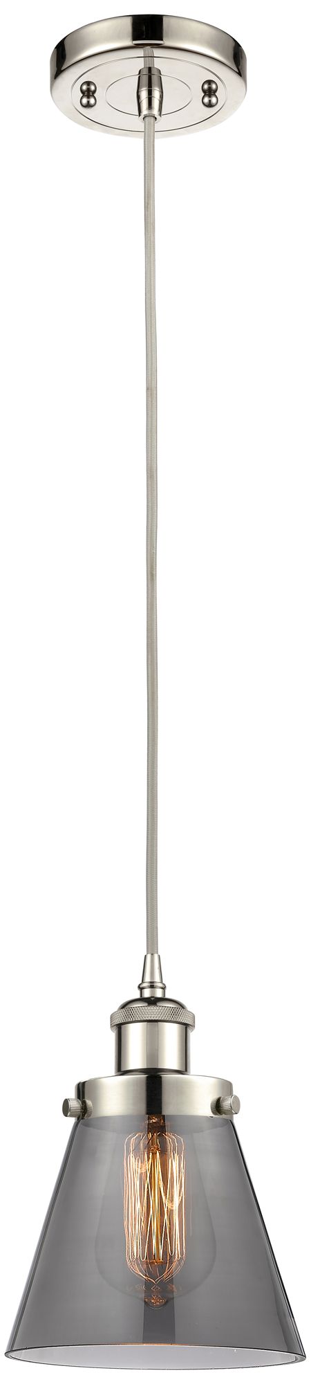 Ballston Urban Cone 6" Mini Pendant - Polished Nickel - Plated Smoke S