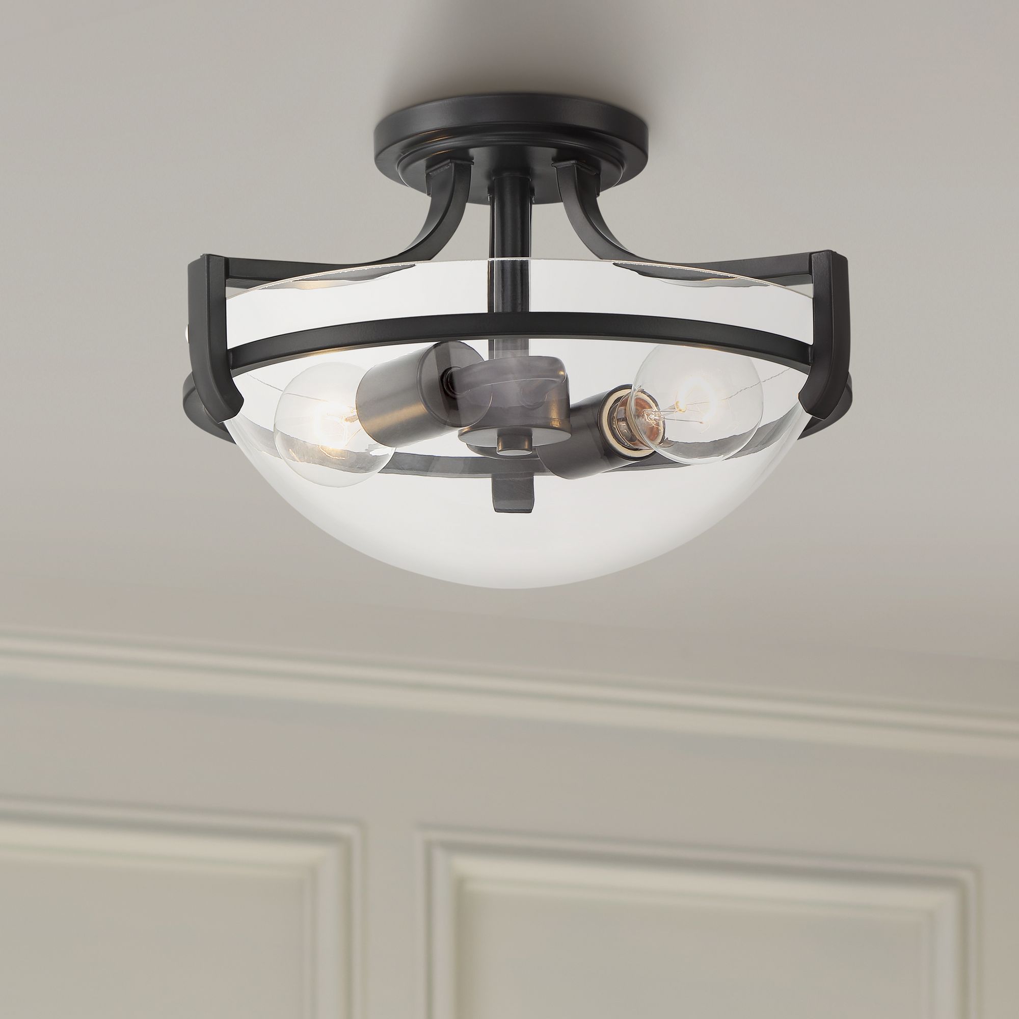 Mallot 13" Wide Black Clear Glass 2-Light Ceiling Light