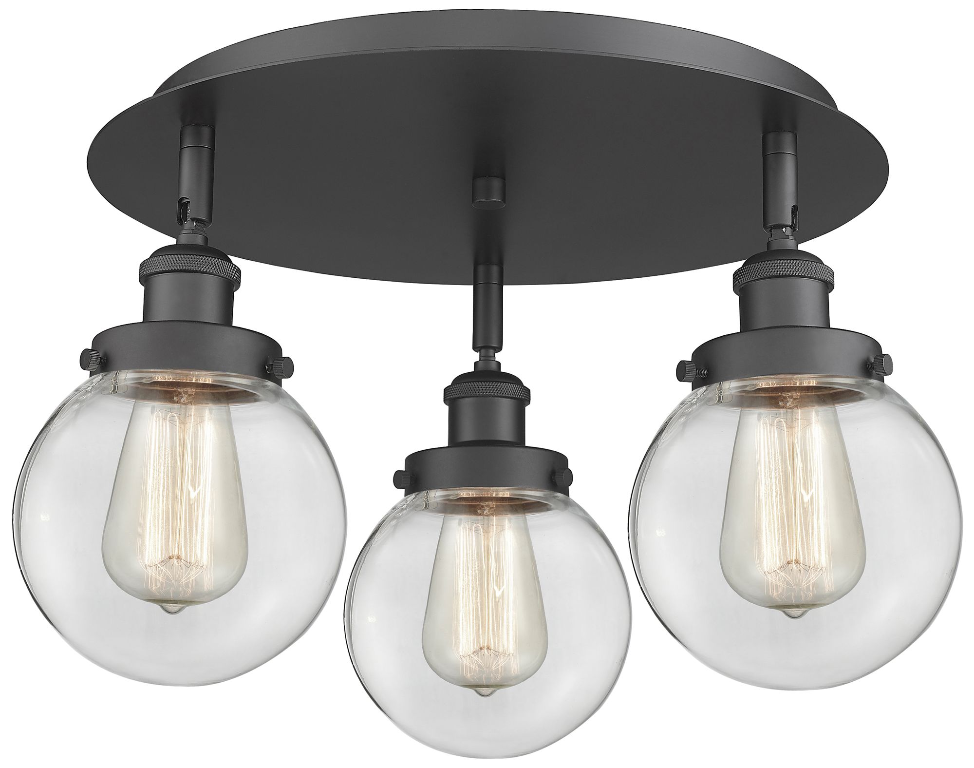 Beacon 17.75" Wide 3 Light Matte Black Flush Mount With Clear Glass Sh