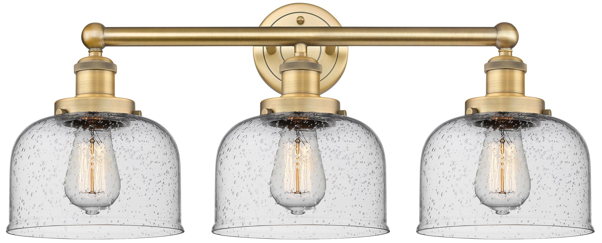 Edison Large Bell 24.5"W 3 Light Brushed Brass Bath Light With Seedy S