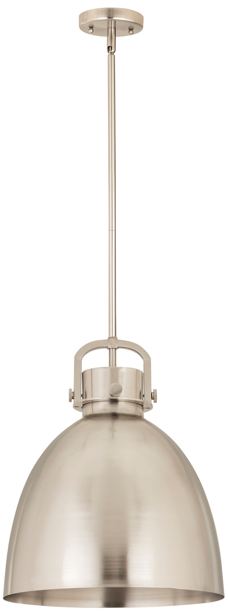 Newton Metal Bell 14"W Satin Nickel Stem Hung Pendant w/ Satin Nickel