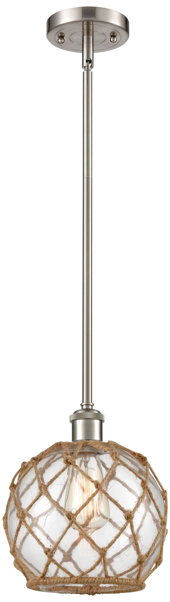 Farmhouse Rope 8"W Brushed Nickel Stem Mini Pendant Clear and Brown Sh