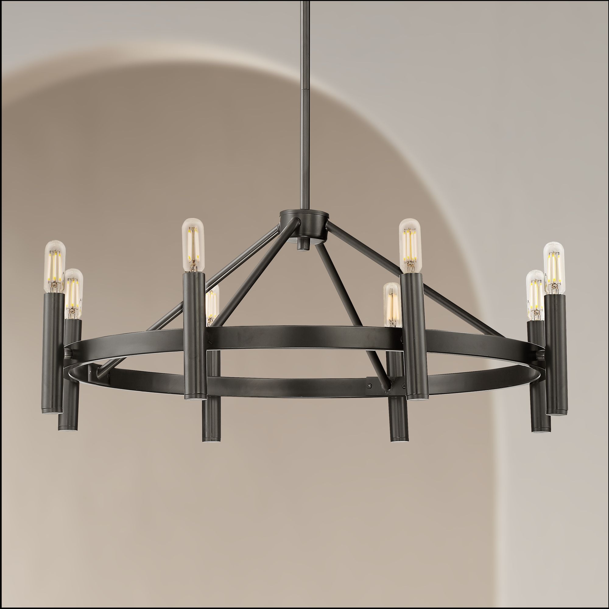 Faith 26 1/4" Wide Black Wagon Wheel Ring LED Chandelier
