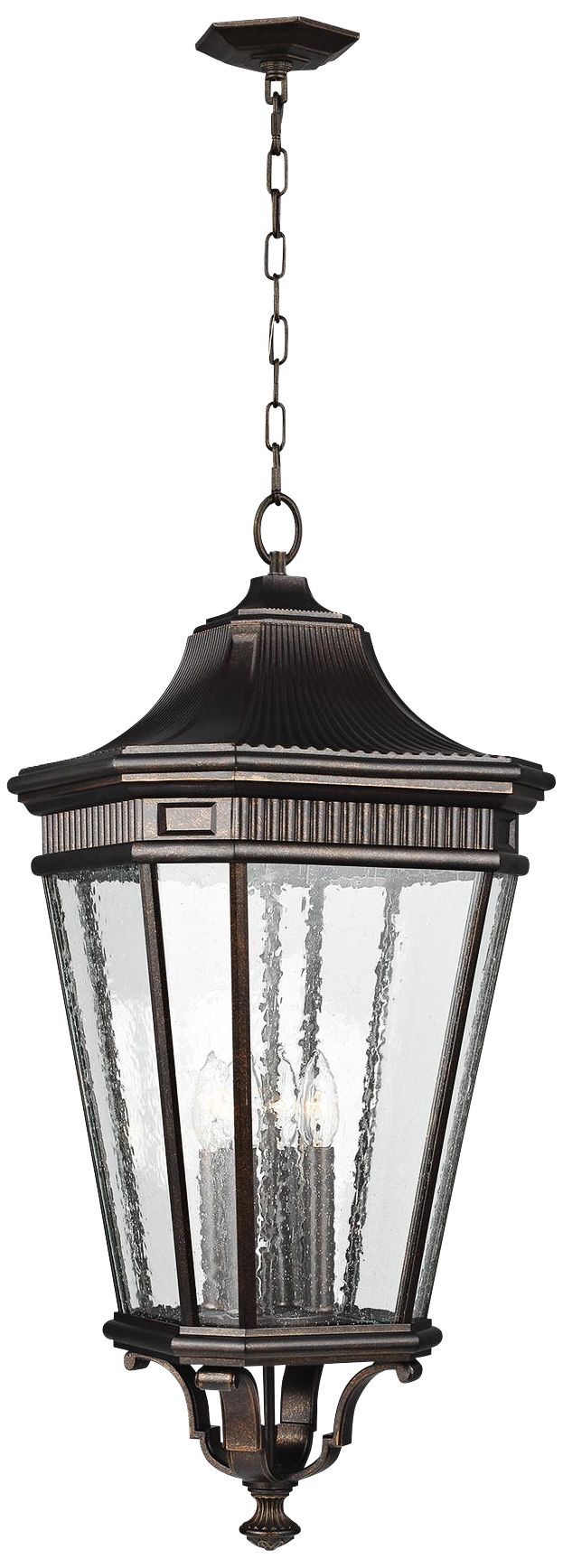 Cotswold Lane 31" High Bronze and Seeded Glass Hanging Light