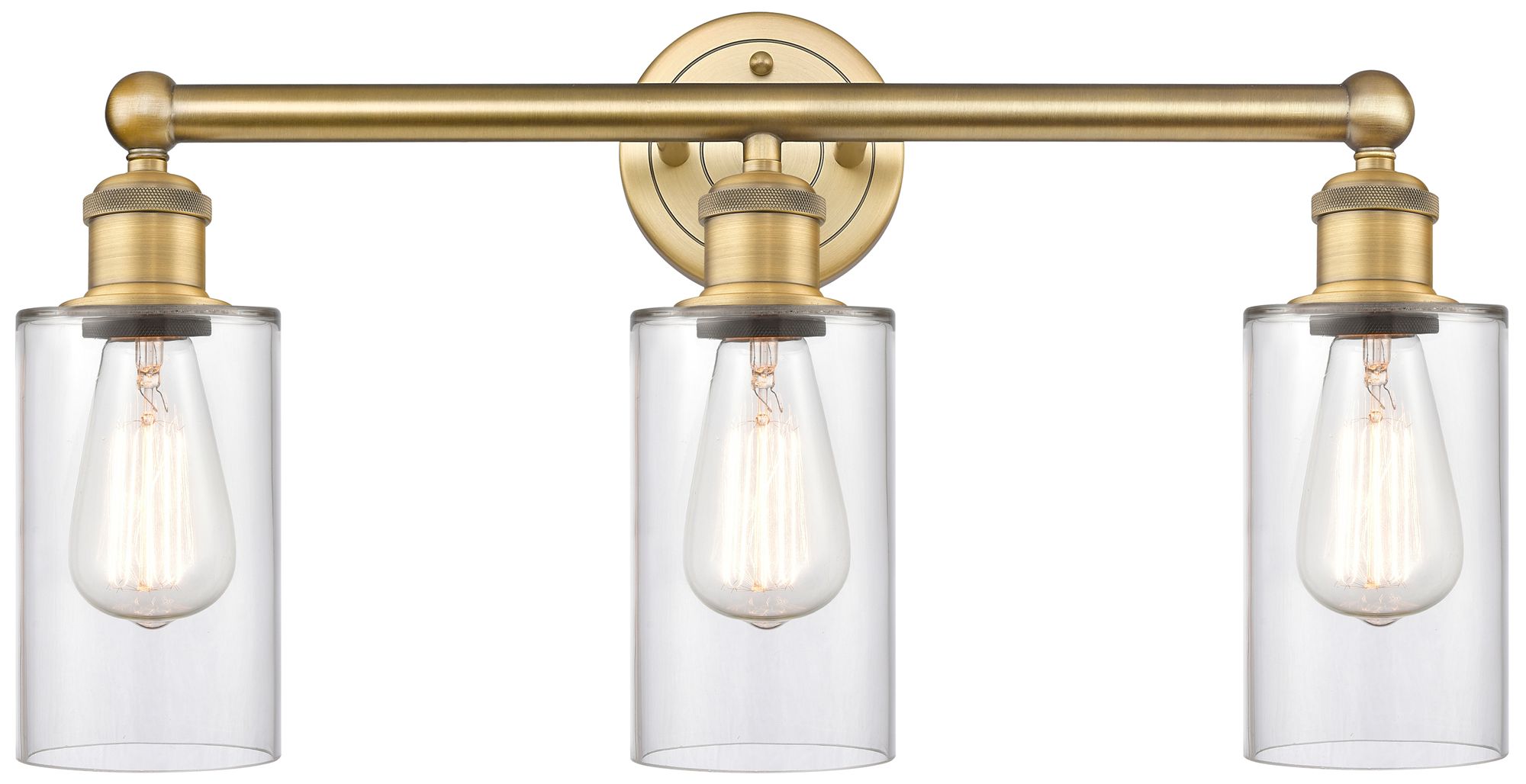 Clymer 21.88" Wide 3 Light Brushed Brass Bath Vanity Light With Clear