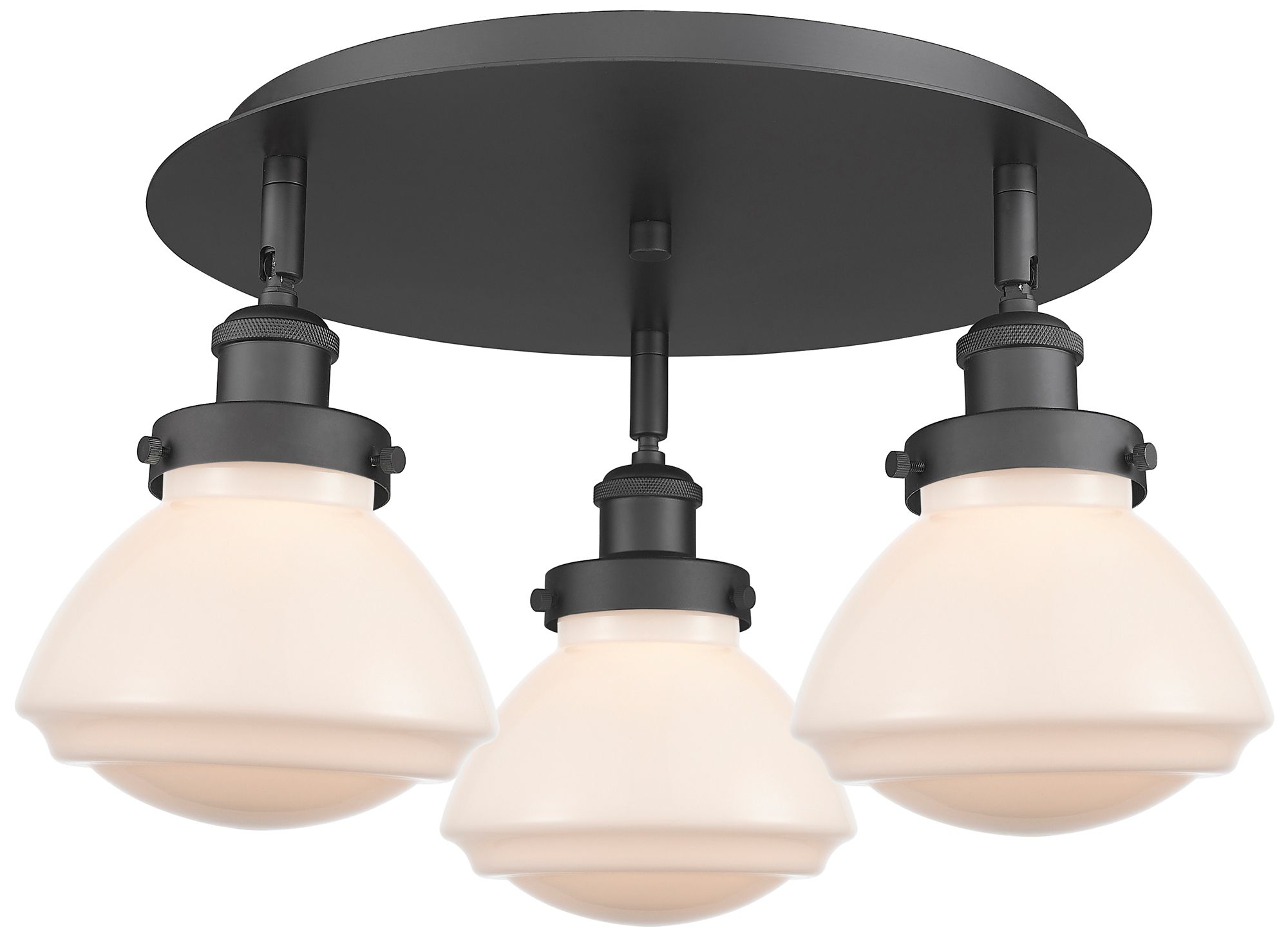 Olean 18.25"W 3 Light Matte Black Flush Mount With Matte White Glass S