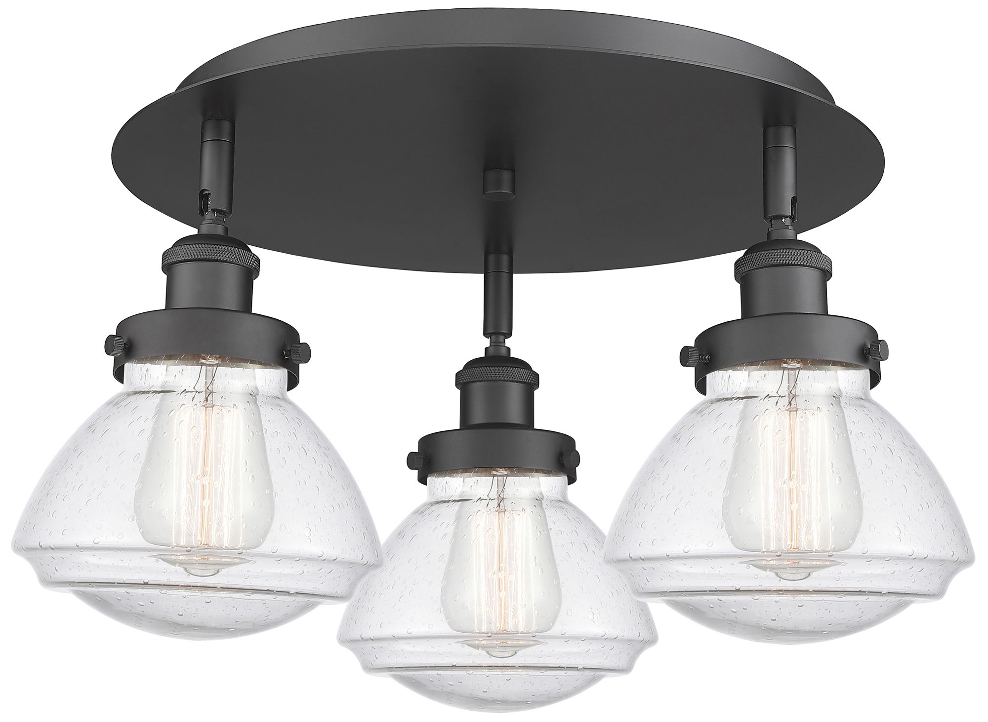 Olean 18.25" Wide 3 Light Matte Black Flush Mount With Seedy Glass Sha
