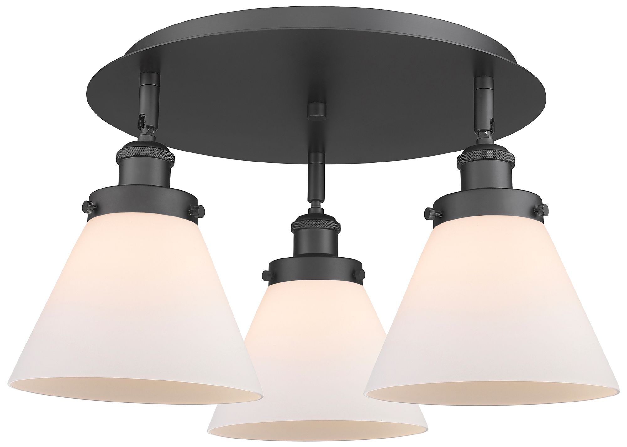 Cone 19.5"W 3 Light Matte Black Flush Mount With Matte White Glass Sha