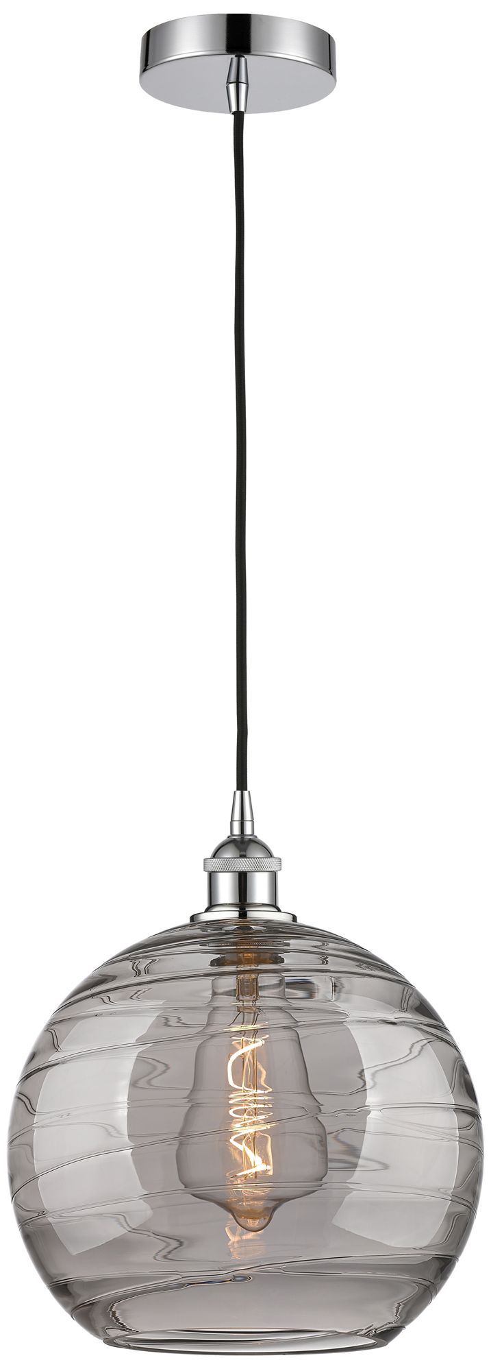 Edison Athens 12"W Chrome Corded Mini Pendant w/ Smoke Swirl Shade