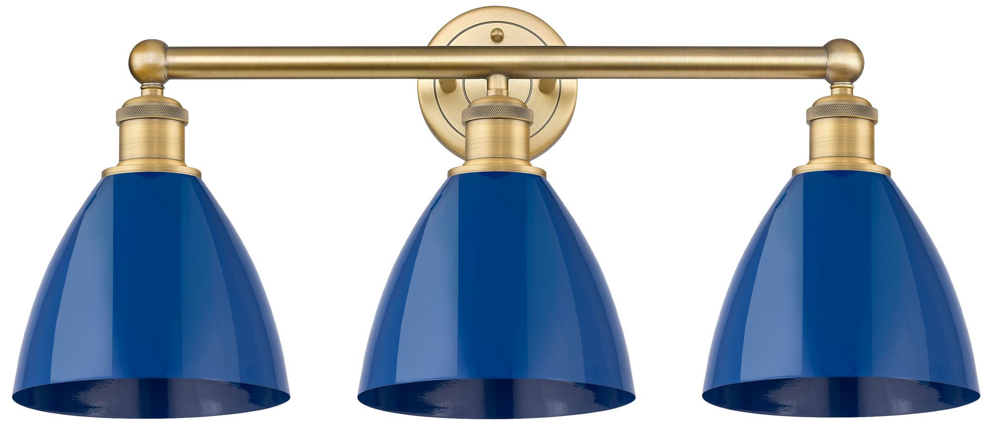 Plymouth Dome 25.5"W 3 Light Brushed Brass Bath Light With Blue Shade