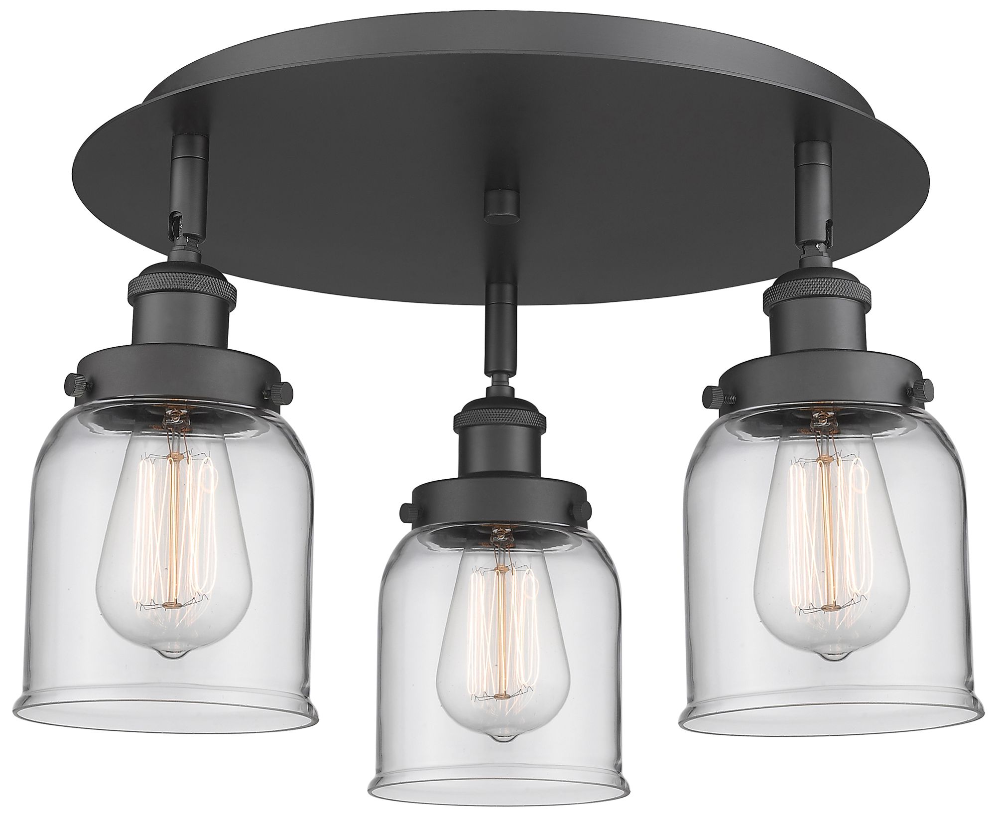 Bell 16.75" Wide 3 Light Matte Black Flush Mount With Clear Glass Shad