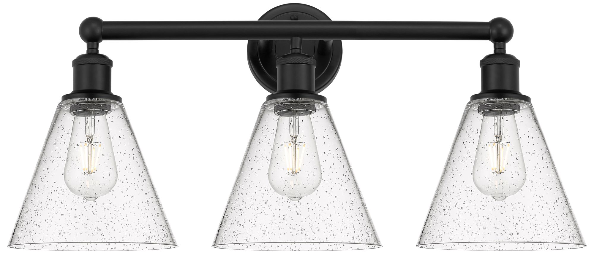 Berkshire 26" Wide 3 Light Matte Black Bath Vanity Light With Seedy Sh