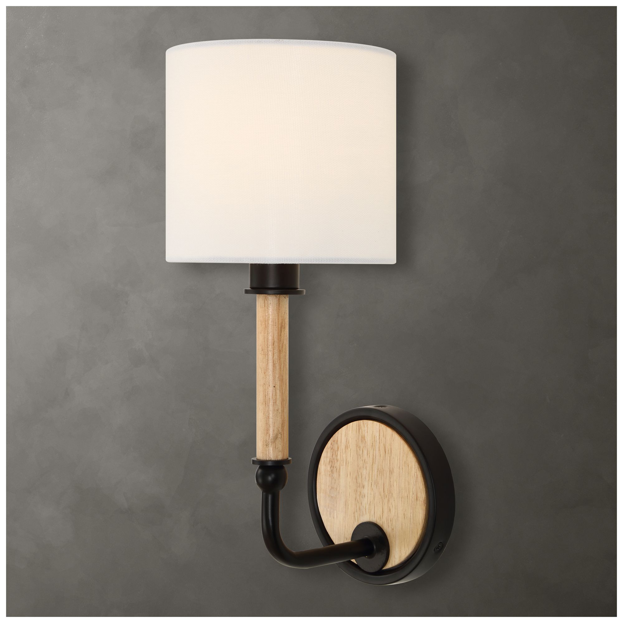 Uttermost Franconia 12" High Black and Natural Wood 1-Light Sconce